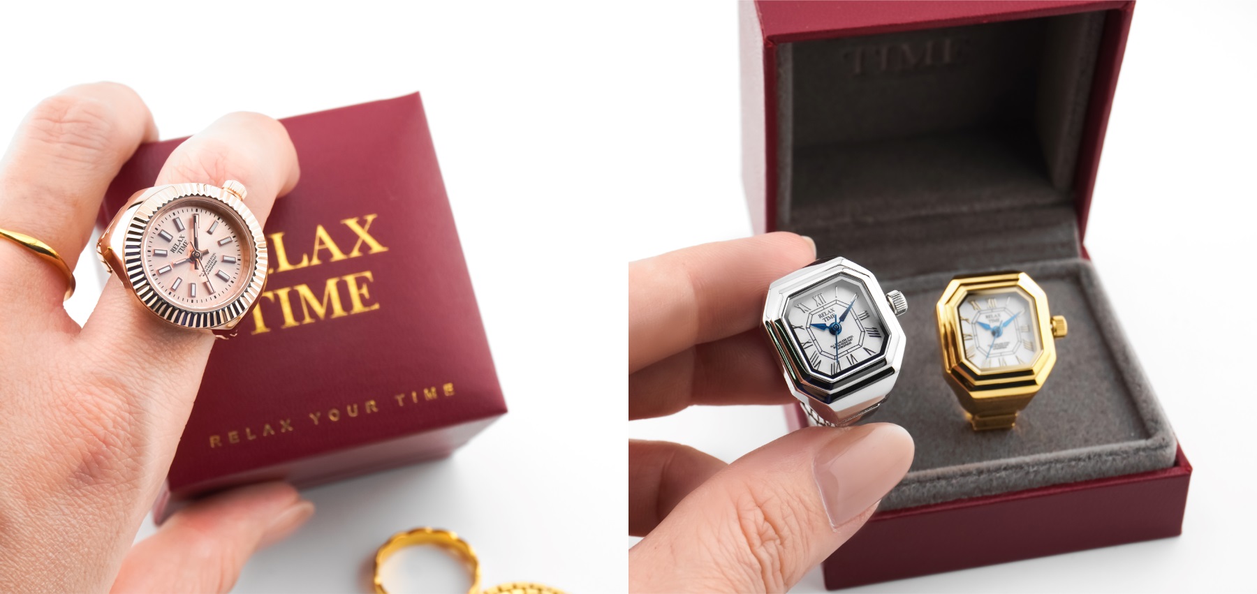 官網限定發售|RELAX TIME 方形戒指錶-玫瑰方形 (RT-P-03)