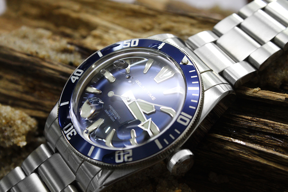 經典潛水外型搭配錶盤超級夜光時標、指針設計,