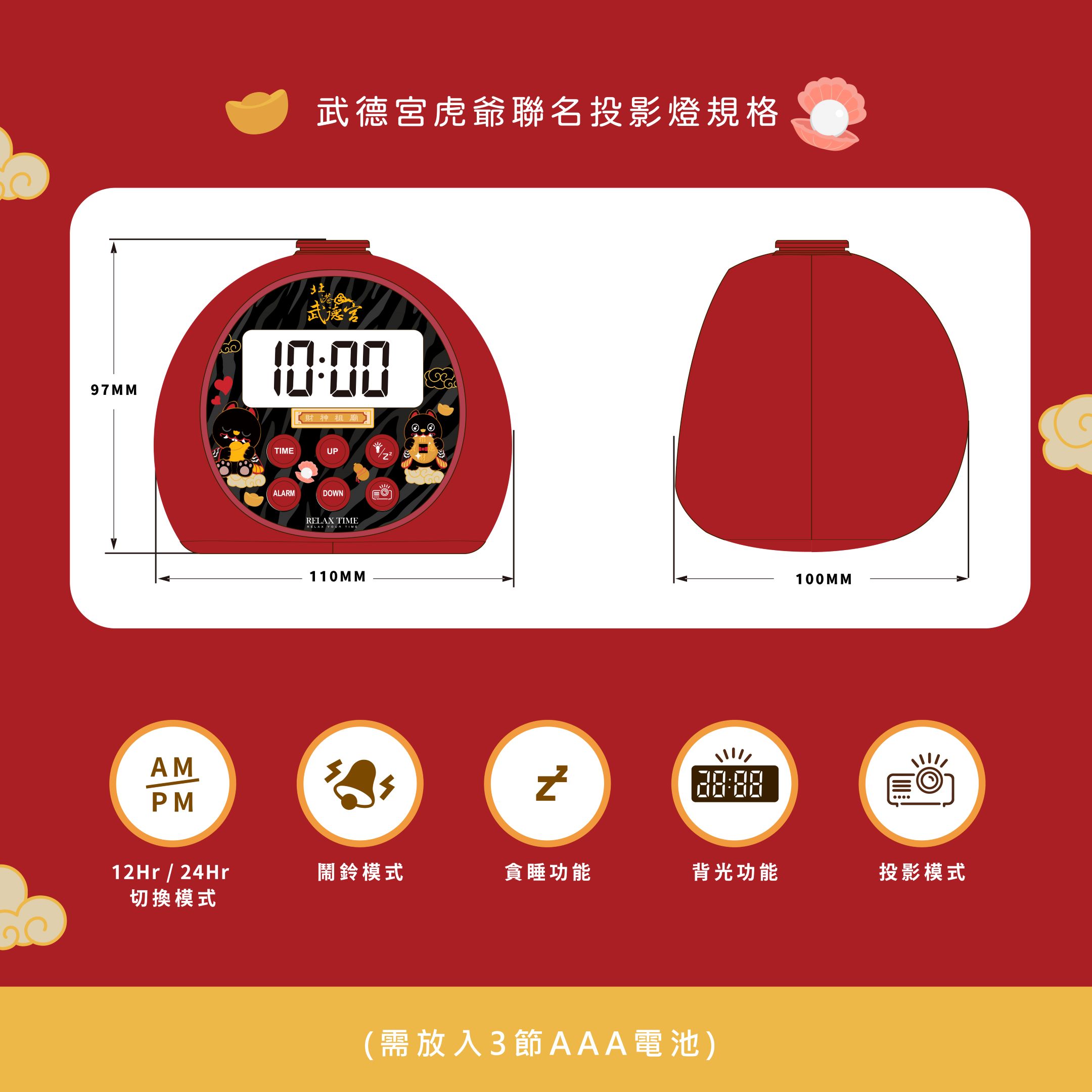 ✤武德宮聯名系列 ✤晚安黑虎投影燈 ✤商品含電池(需放置3節AAA電池)