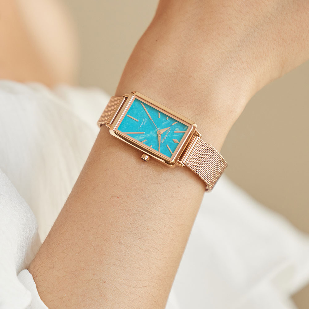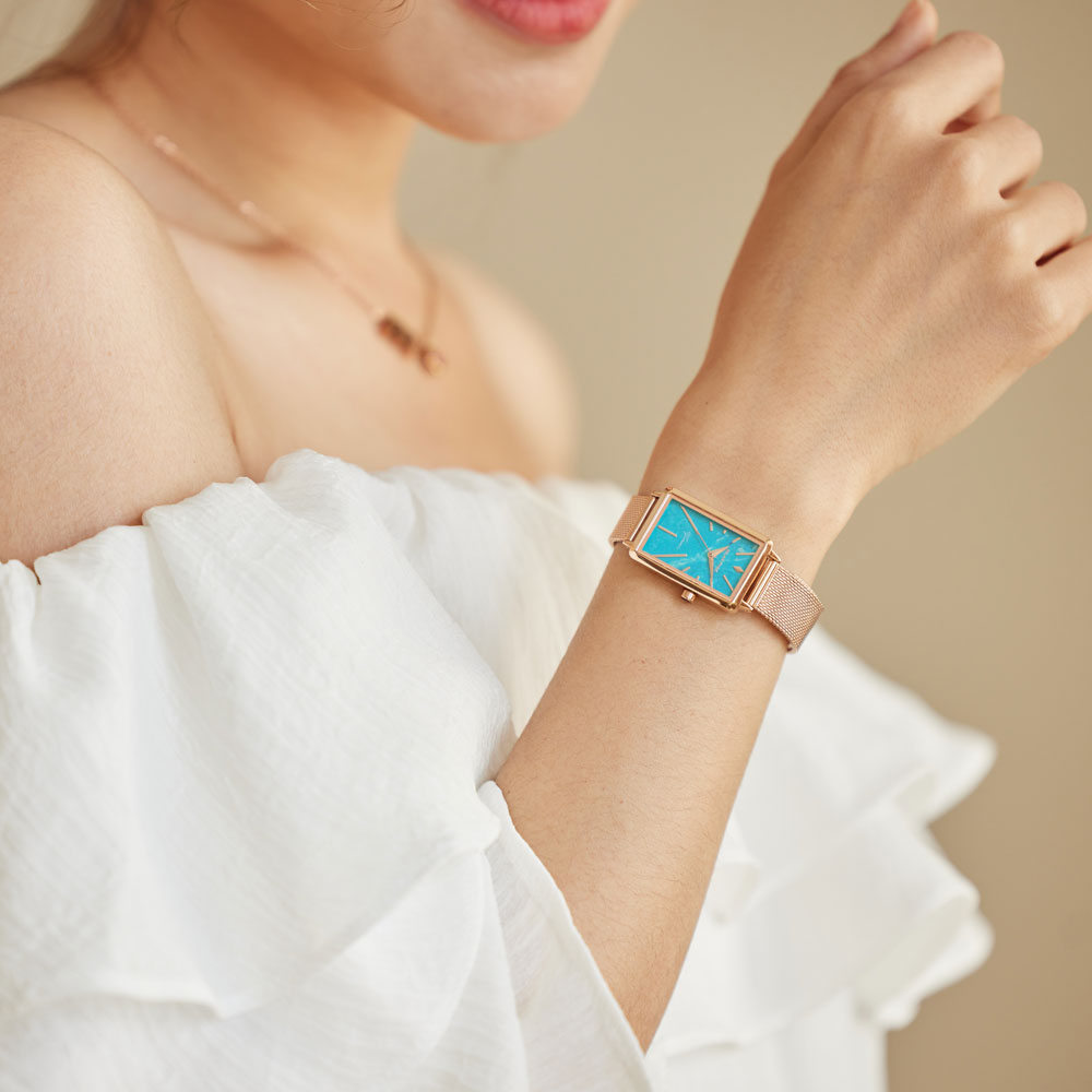 輕巧的方錶設計,錶盤散發石紋光澤