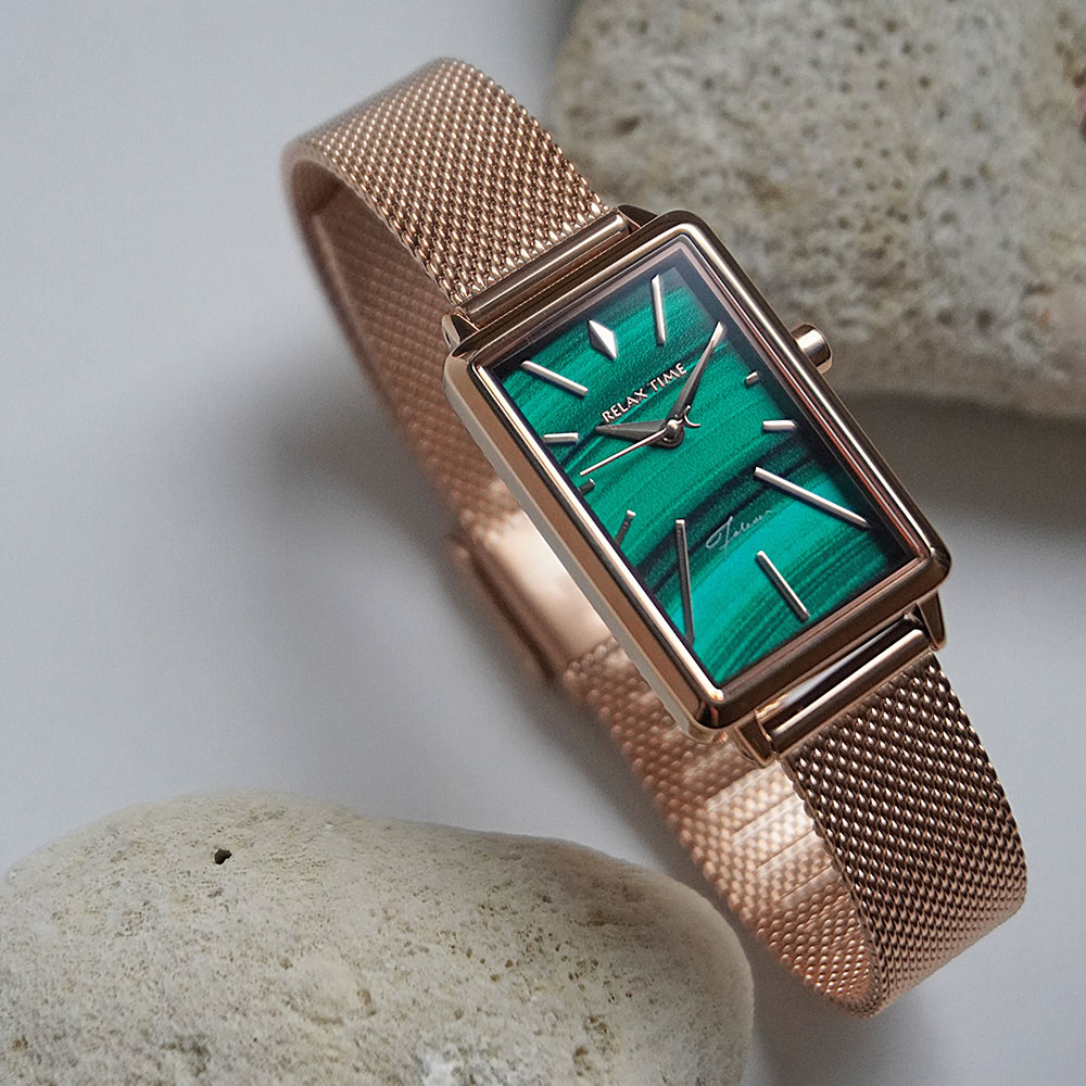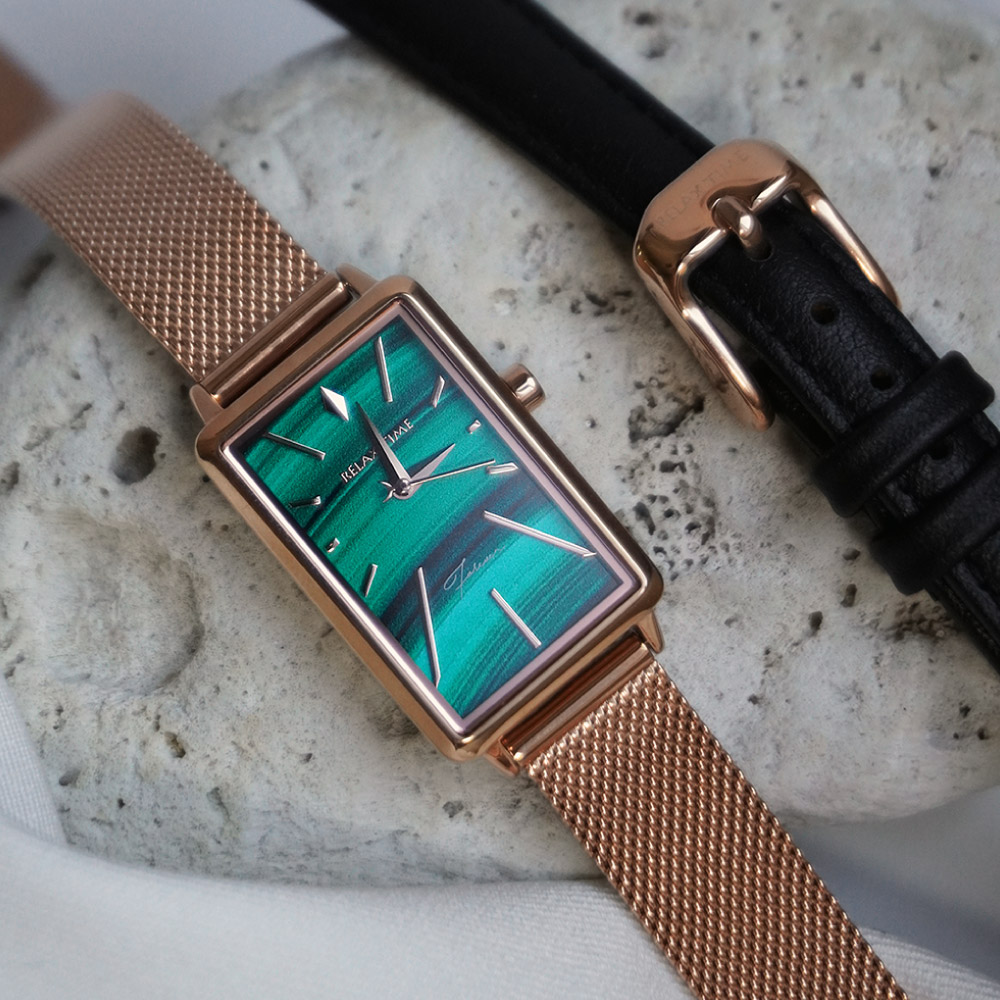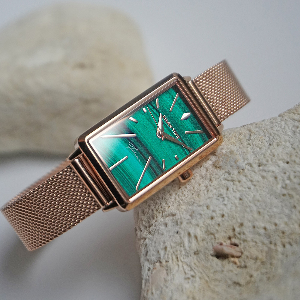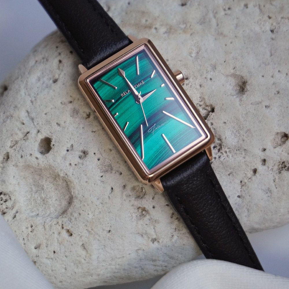 輕巧的方錶設計,錶盤散發石紋光澤
