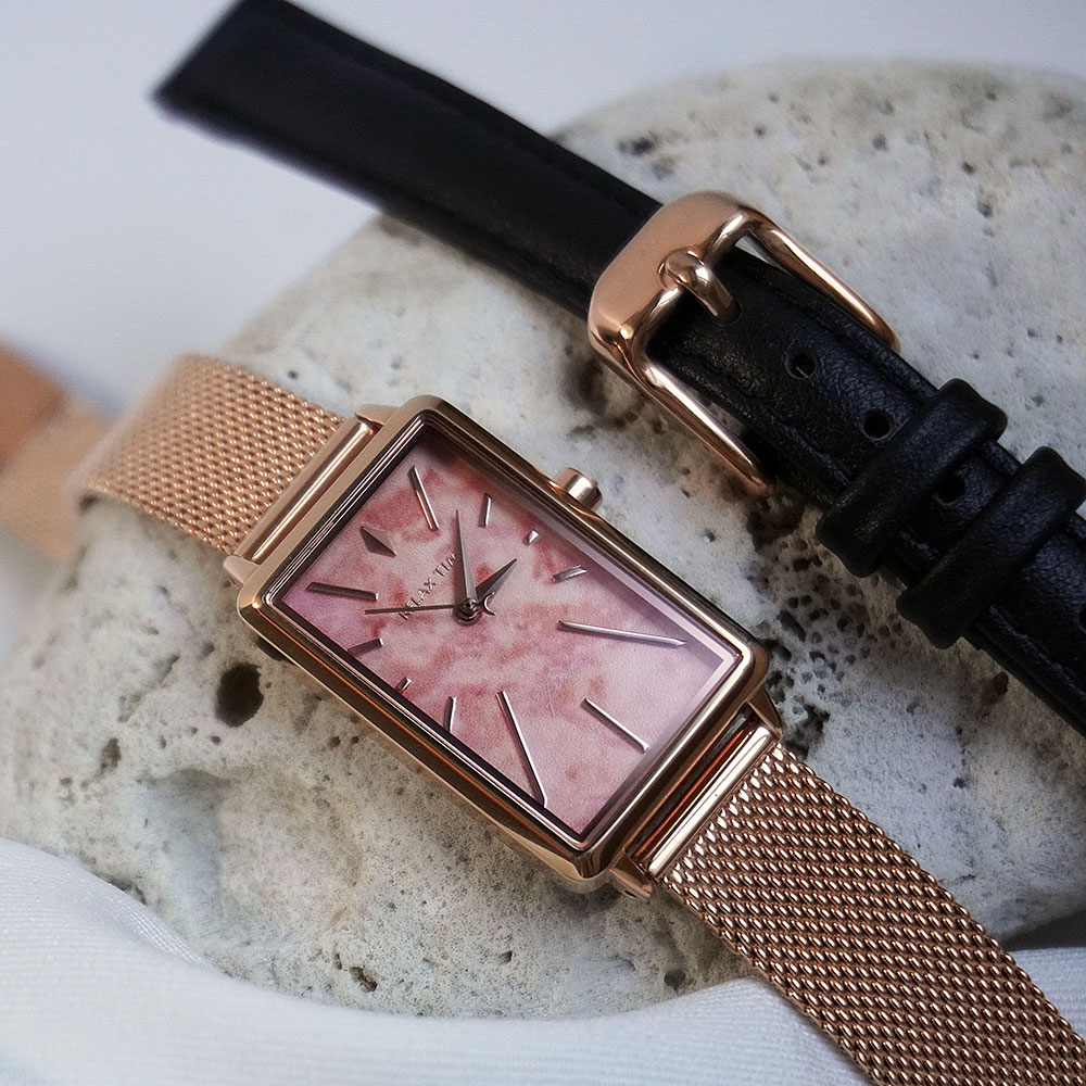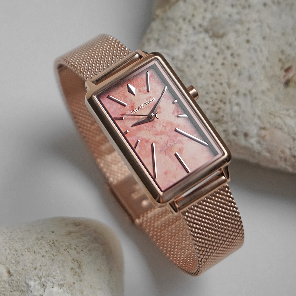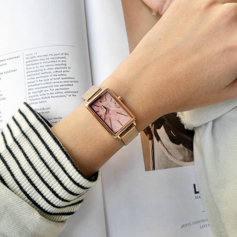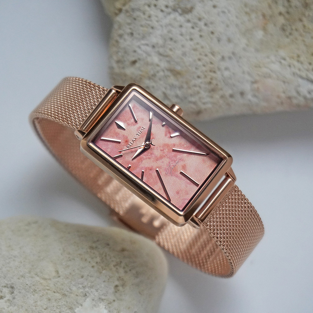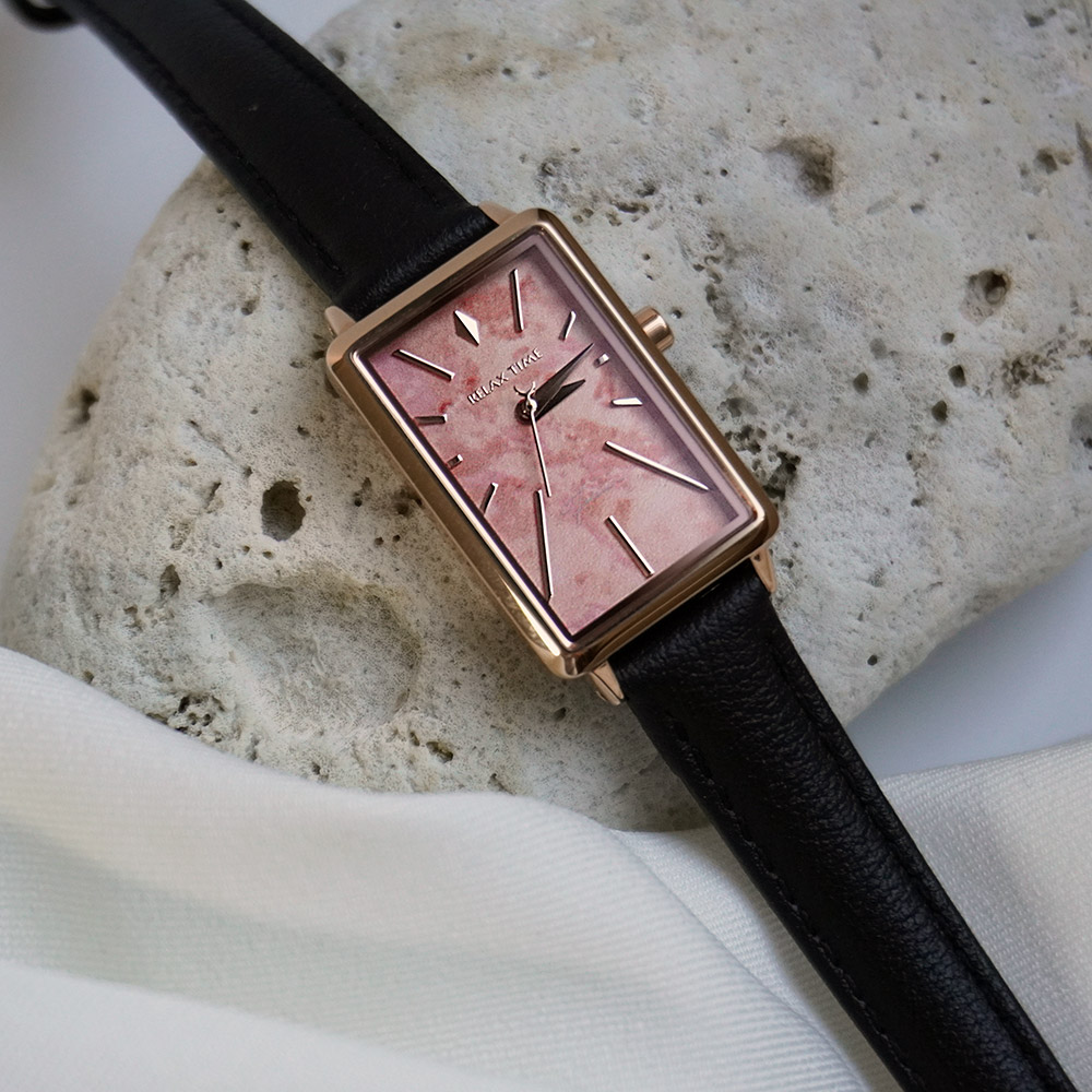 輕巧的方錶設計,錶盤散發石紋光澤