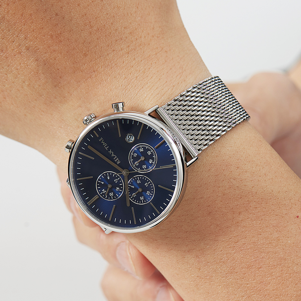 *加碼送皮帶*RELAX TIME 三眼計時對錶-藍x玫 Ø40mm
